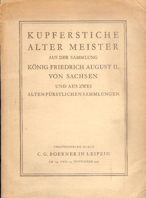 Kupferstiche alter Meister aus der Sammlung König Friedrich August II. von Sachesen und aus zwei alten fürstlichen Sammlungen. Auktionskatalog.